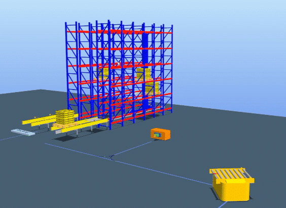 根据方案规划的运行路线,然后搭建对应的虚拟3D模型以及输入实际的运行节拍,最后模拟测试出AGV的运行效率